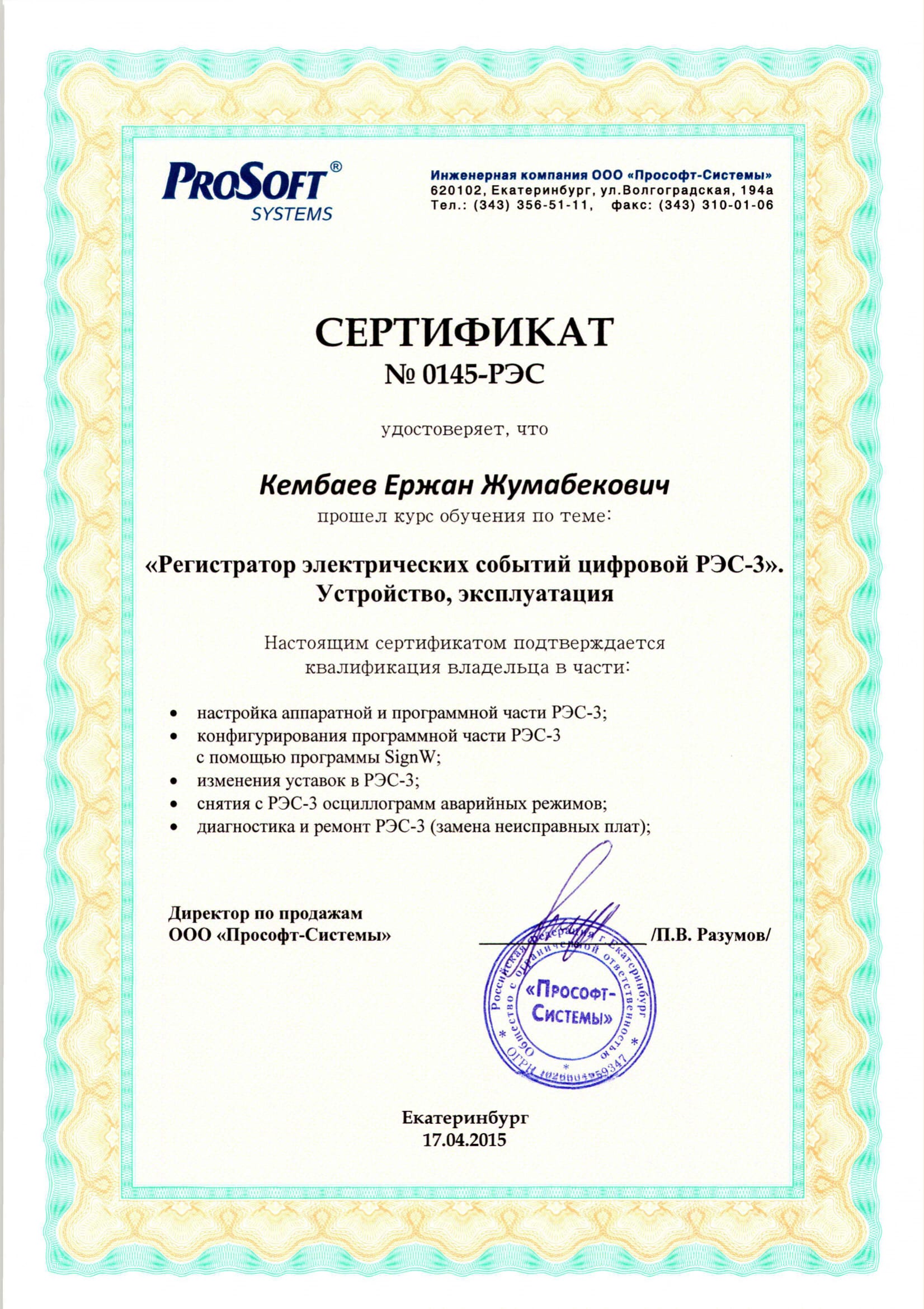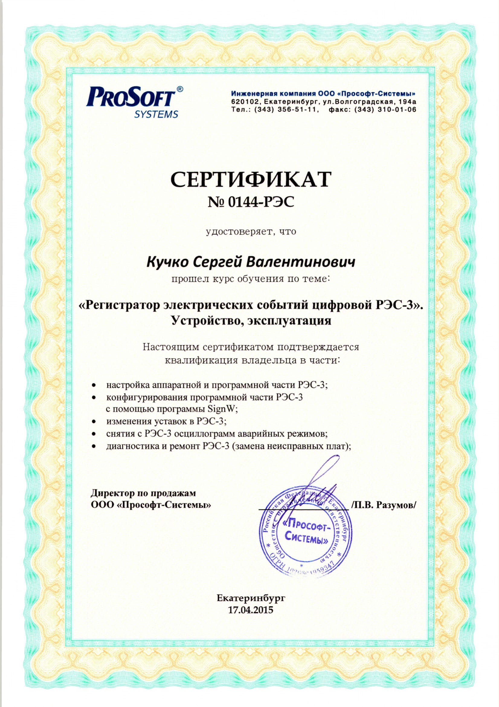 СЕРТИФИКАТЫ СОТРУДНИКОВ
