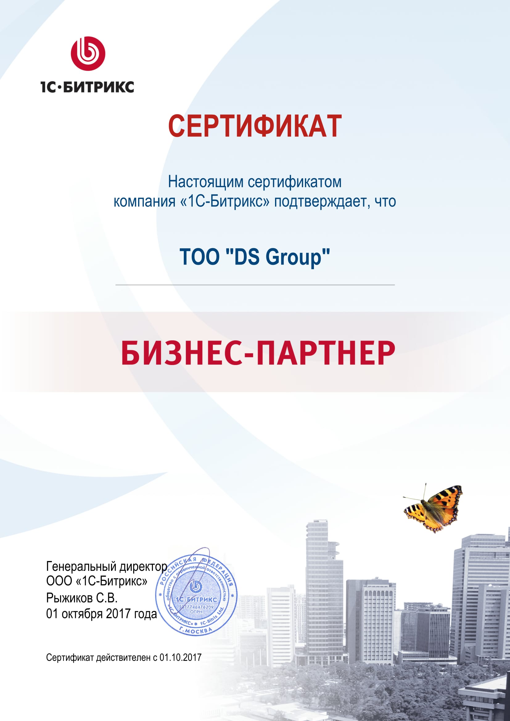 СЕРТИФИКАТЫ О ПАРТНЕРСТВЕ