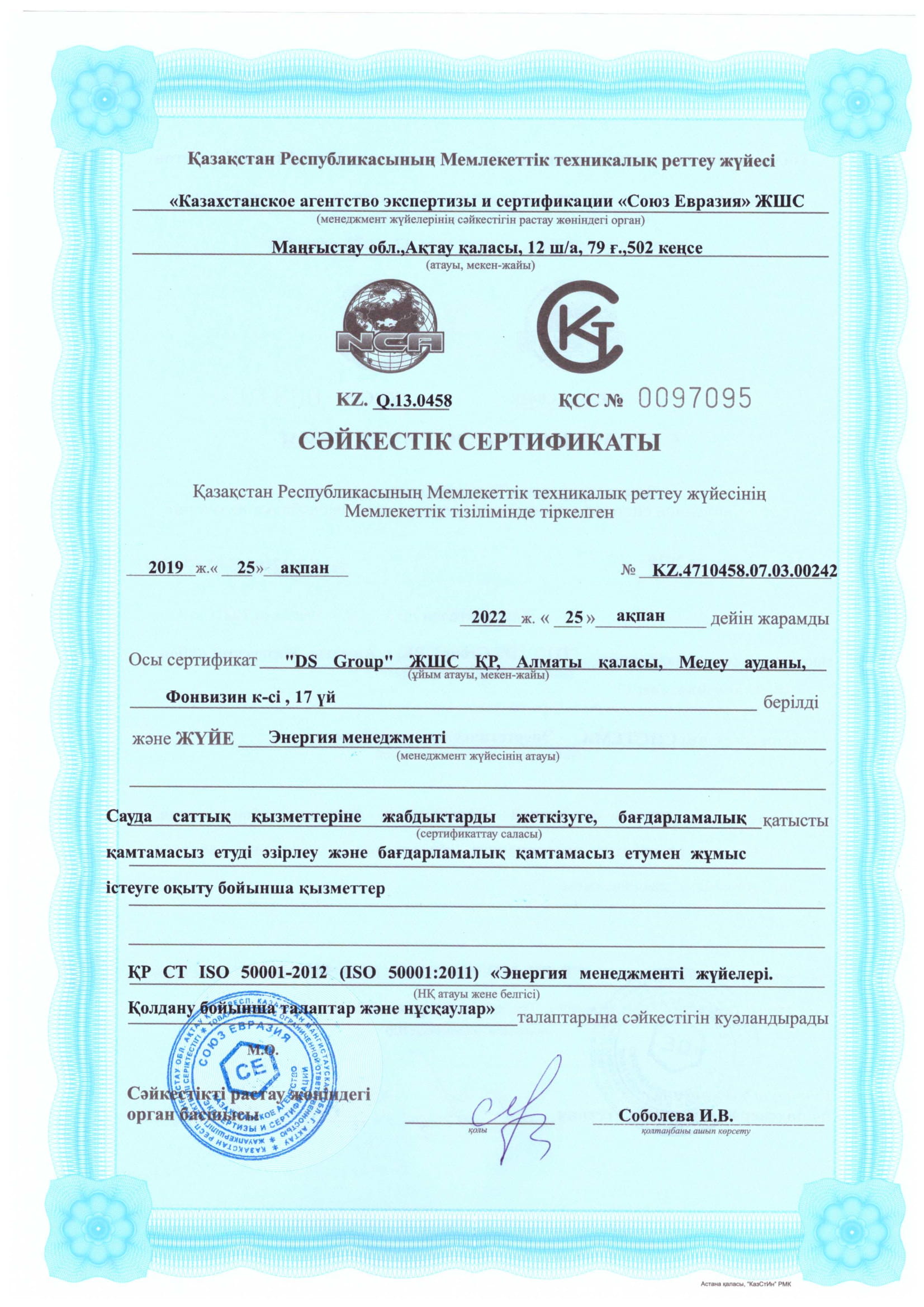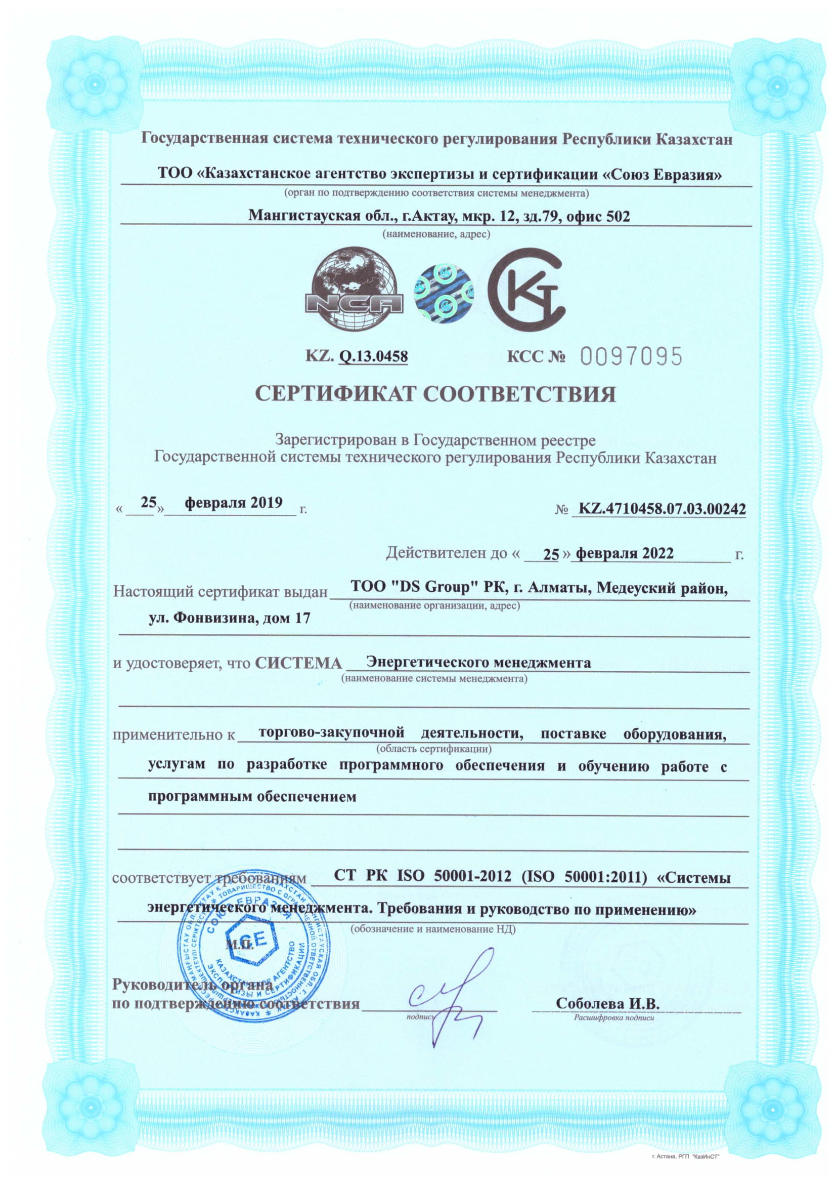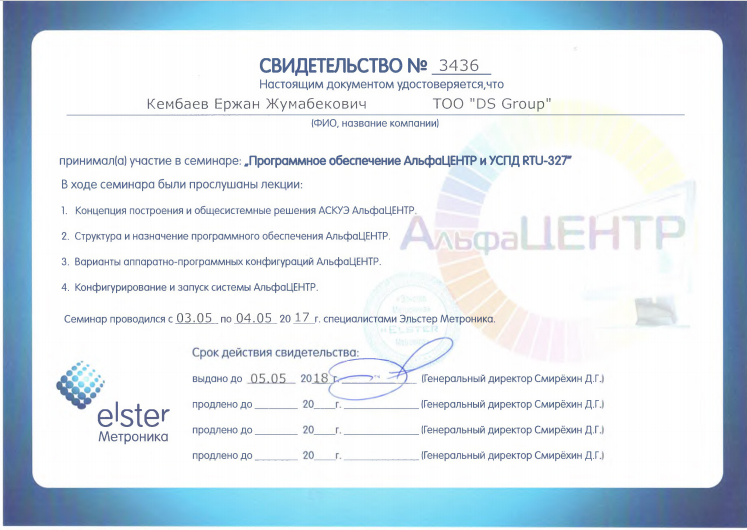 СЕРТИФИКАТЫ КОМПАНИИ